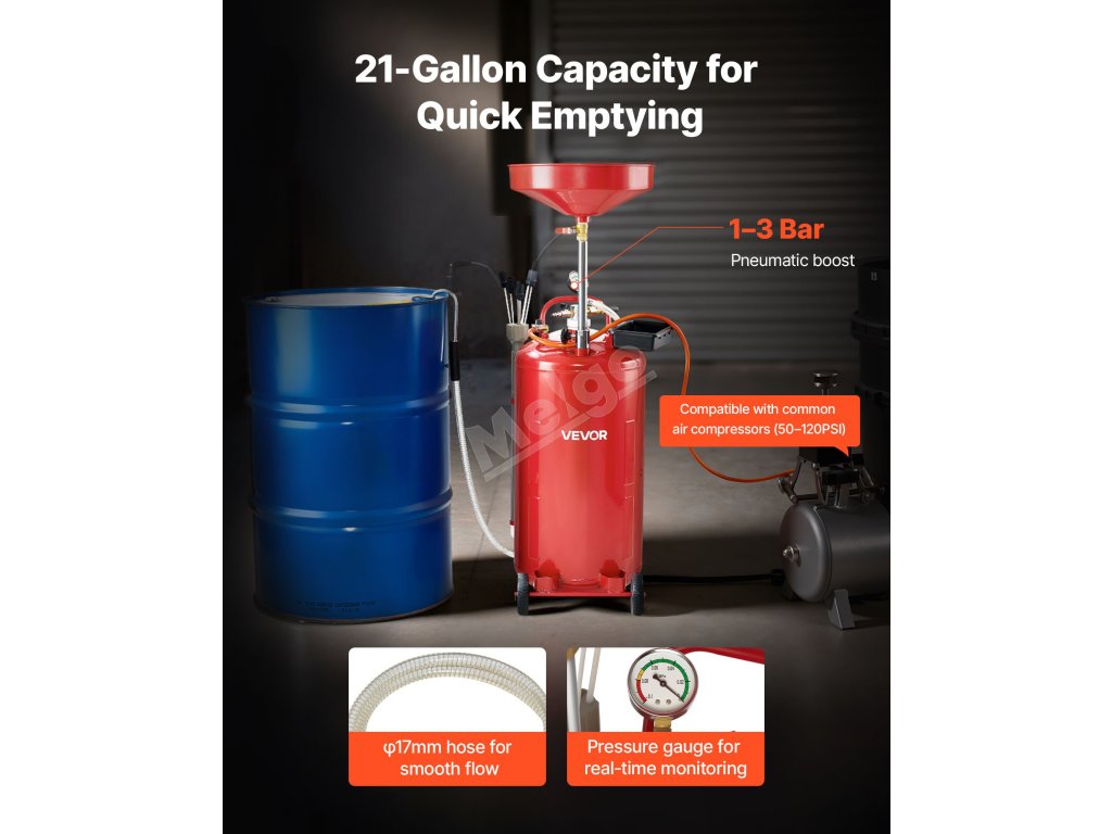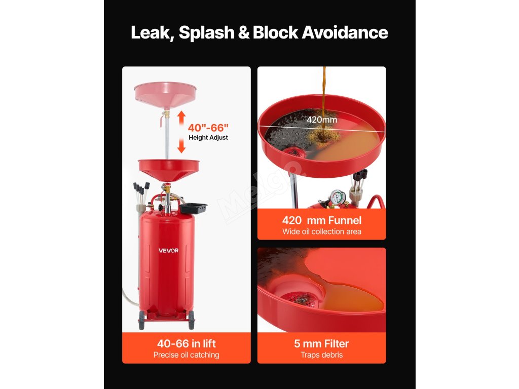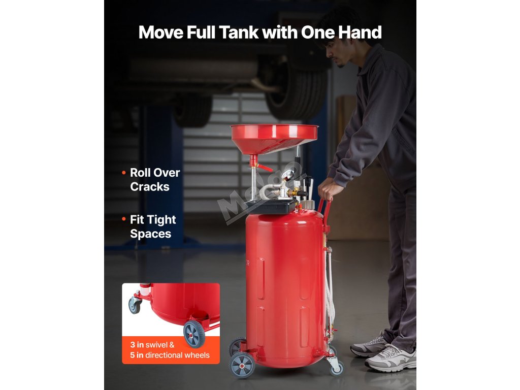 Nádoba na odpadní olej 79.5L vzduchová, nastavitelný trychtýř, kolečka