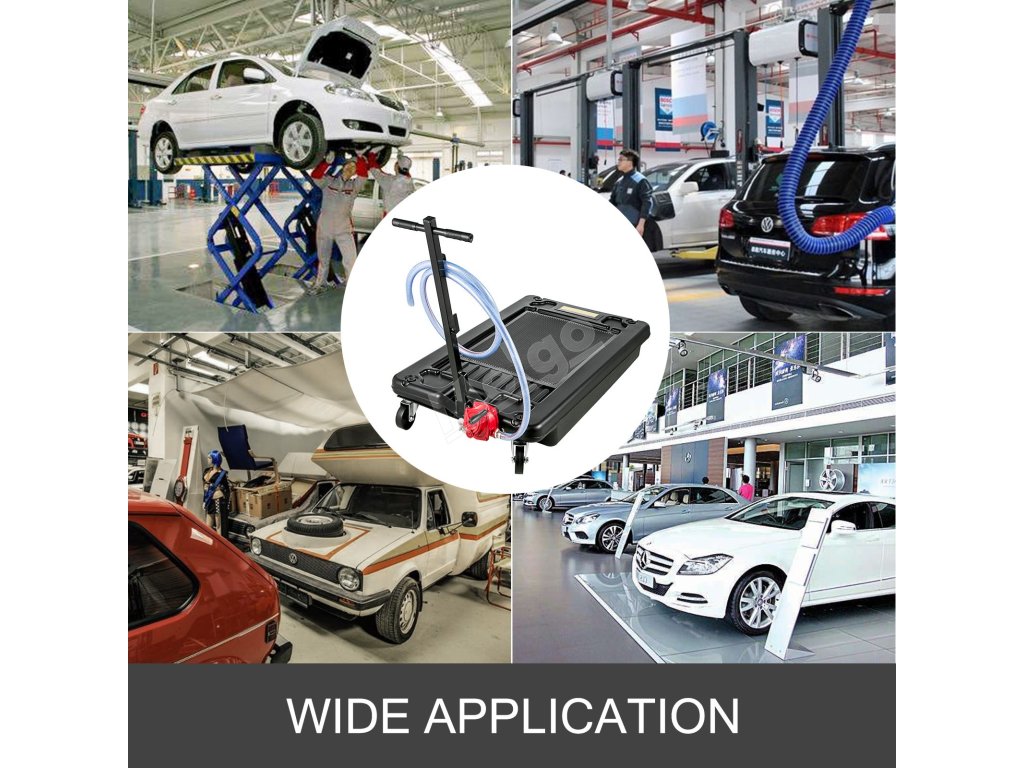 Tato vypouštěcí miska na olej je vybavena čtyřmi 4" otočnými kolečky pro snadnou manévrovatelnost.