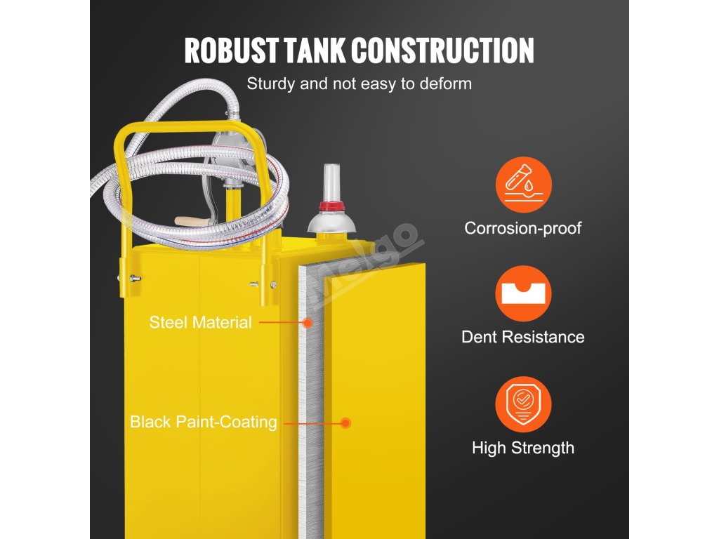 Přenosná palivová nádrž je určena k přepravě nafty nebo benzinu na pracoviště. Je ideální pro cisternové vozy, lodě, venkovní průmysl, stavebnictví a další.