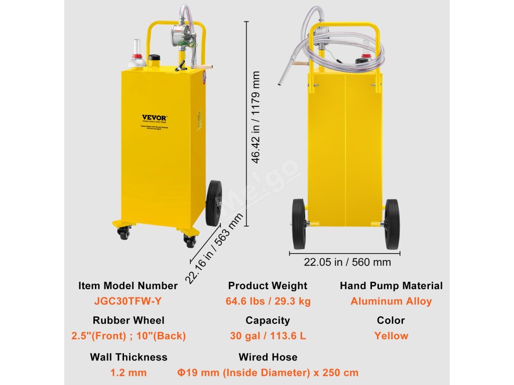 Kádinka Petrol Beaker má prvotřídní design. Obsahuje 10" velká kolečka a 2,5" malá kolečka, antistatickou zemní svorku, plnicí hrdlo s uzávěrem plynu, praktický držák hadice a tlačné madlo s jednoduchou pákou. všechny tyto konstrukce podpoří efektivní a bezpečnou práci.