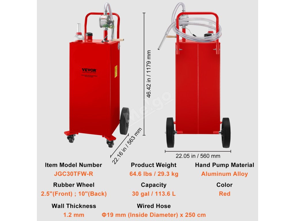 Nádoba na palivo 30 gallon, 4 kolečka, ruční čerpadlo, benzín/diesel