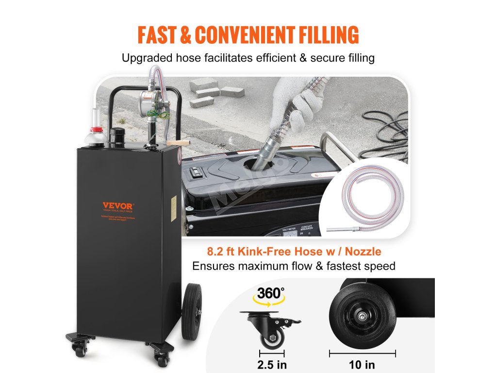 8.2 FT gumová hadice automobilové kvality usnadňuje efektivní a bezpečné tankování. Těžká tryska podporuje rychlý přísun paliva. Stačí otevřít svorku a nechat proudit. Palivovou nádrž naplníte rychle během několika minut.