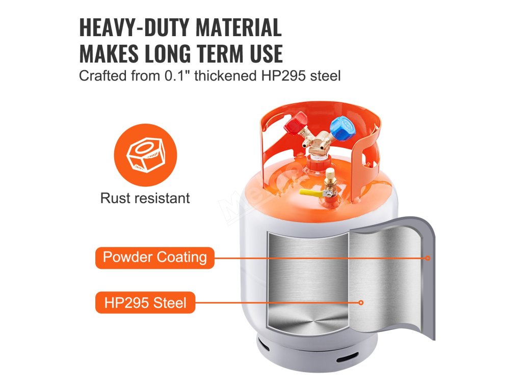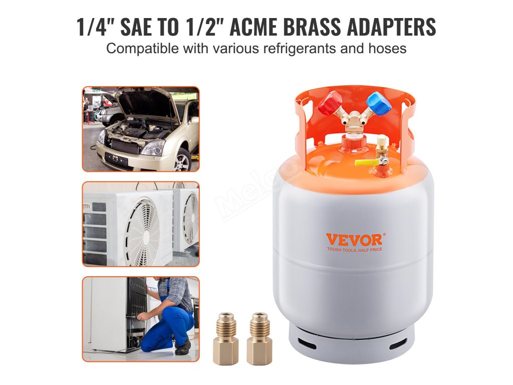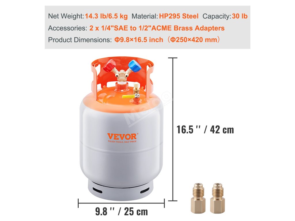 Ide o skvelú kvalitu a dostupnú cenu našej fľaše na spätné získavanie chladiva VEVOR. Naša 30lb nádrž VEVOR je skonštruovaná s ohľadom na trvanlivosť a funkčnosť a je ideálna pre rôzne chladničky. Nádrž sa dodáva so závitovou zátkou, ktorá sa pripojí, ak používate iónové uzatváracie zariadenie alebo zariadenie na uzavretie plnej nádrže. Zabezpečuje bezpečné a účinné obnovenie a prenos kvapalného LP do menších fliaš.