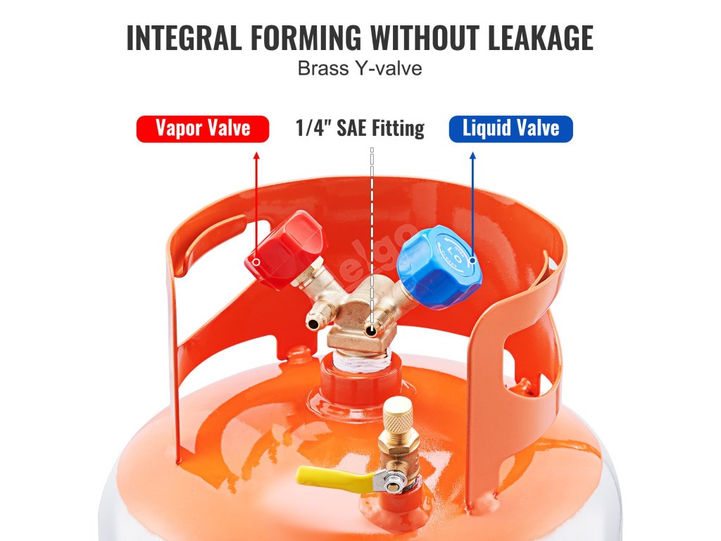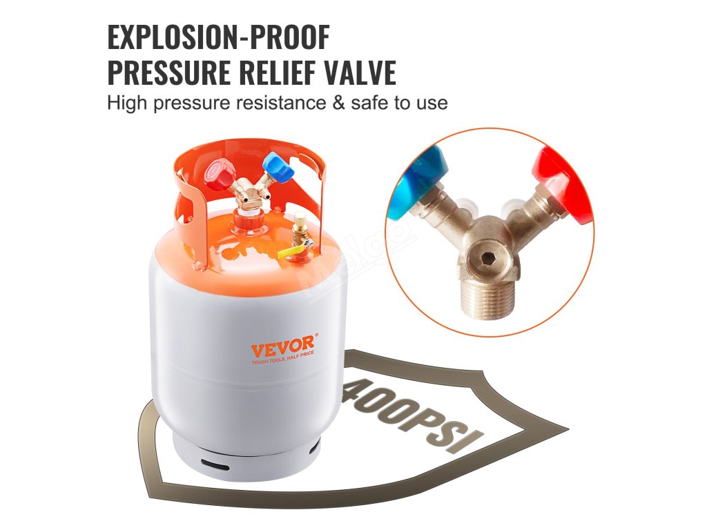 Nádrž na chladivo VEVOR 400 PSI je ideálna pre 134-a, čo znamená, že je mimoriadne praktická na opravu strojov a udržiavanie tlaku bez úniku. Táto nádrž má neobmedzujúci dvojcestný ventil, čo si väčšina ľudí obľúbila oproti jednosmerným ventilom, ktoré sa bežne nachádzajú v zelených nádržiach. Bude sa ľahko používať a za svoju cenu ponúka skvelú hodnotu, takže je to vynikajúca voľba pre časté úlohy obnovy.