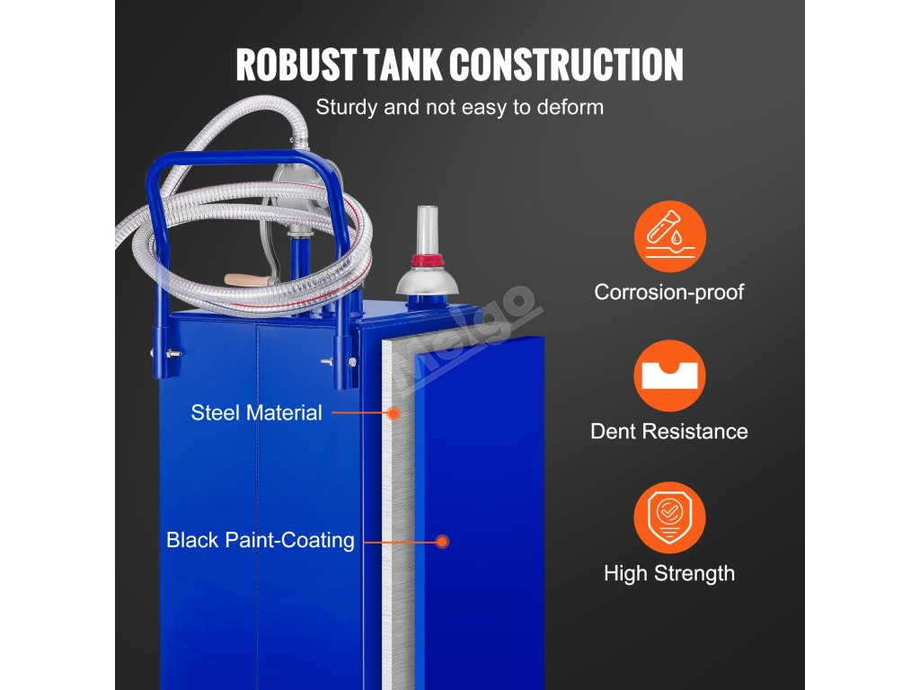 Přenosná palivová nádrž je určena k přepravě nafty nebo benzinu na pracoviště. Je ideální pro cisternové vozy, lodě, venkovní průmysl, stavebnictví a další.