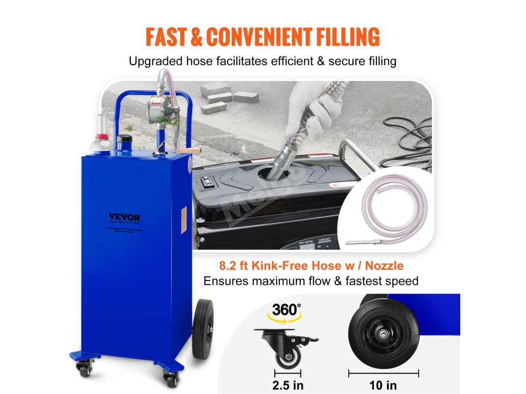 8.2 FT gumová hadice automobilové kvality usnadňuje efektivní a bezpečné tankování. Těžká tryska podporuje rychlý přísun paliva. Stačí otevřít svorku a nechat proudit. Palivovou nádrž naplníte rychle během několika minut.