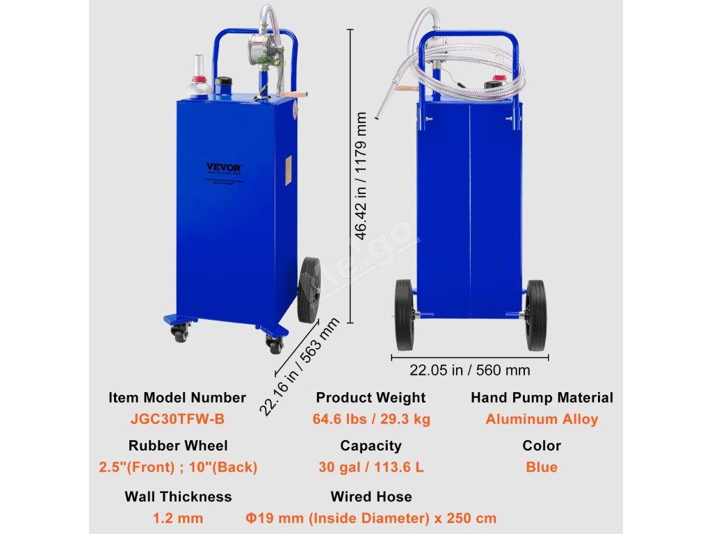 Kádinka Petrol Beaker má prvotřídní design. Obsahuje 10" velká kolečka a 2,5" malá kolečka, antistatickou zemní svorku, plnicí hrdlo s uzávěrem plynu, praktický držák hadice a tlačné madlo s jednoduchou pákou. všechny tyto konstrukce podpoří efektivní a bezpečnou práci.