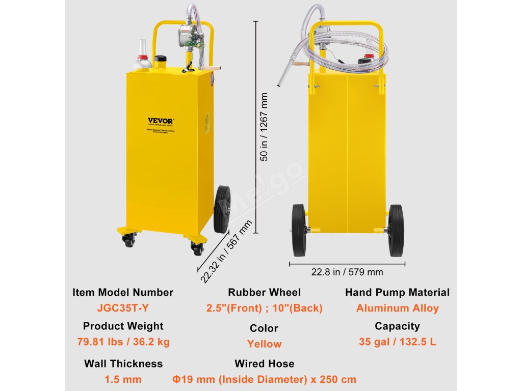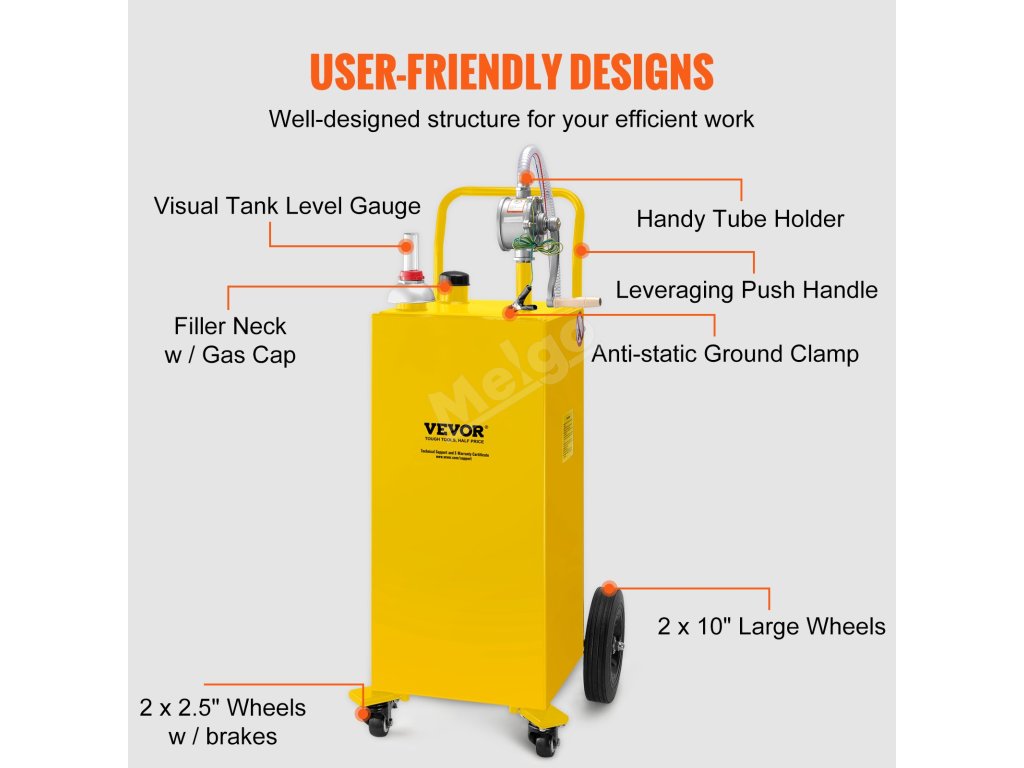 Ať už plníte cokoli, naše přenosná nádrž je navržena tak, aby vám pomohla. Univerzální nádrž je schválena pro bezpečné skladování a výdej až 30 galonů benzinu, nafty a petroleje.