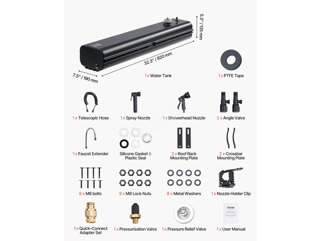 Tato odolná, velkokapacitní hliníková nádrž na vodu se střešní řadou minimalizuje doplňování vody a podporuje sprchování, oplachování a čištění. Slouží k více účelům a poskytuje spolehlivý zdroj vody pro jízdu v terénu, kempování, cestování a nouzové situace.