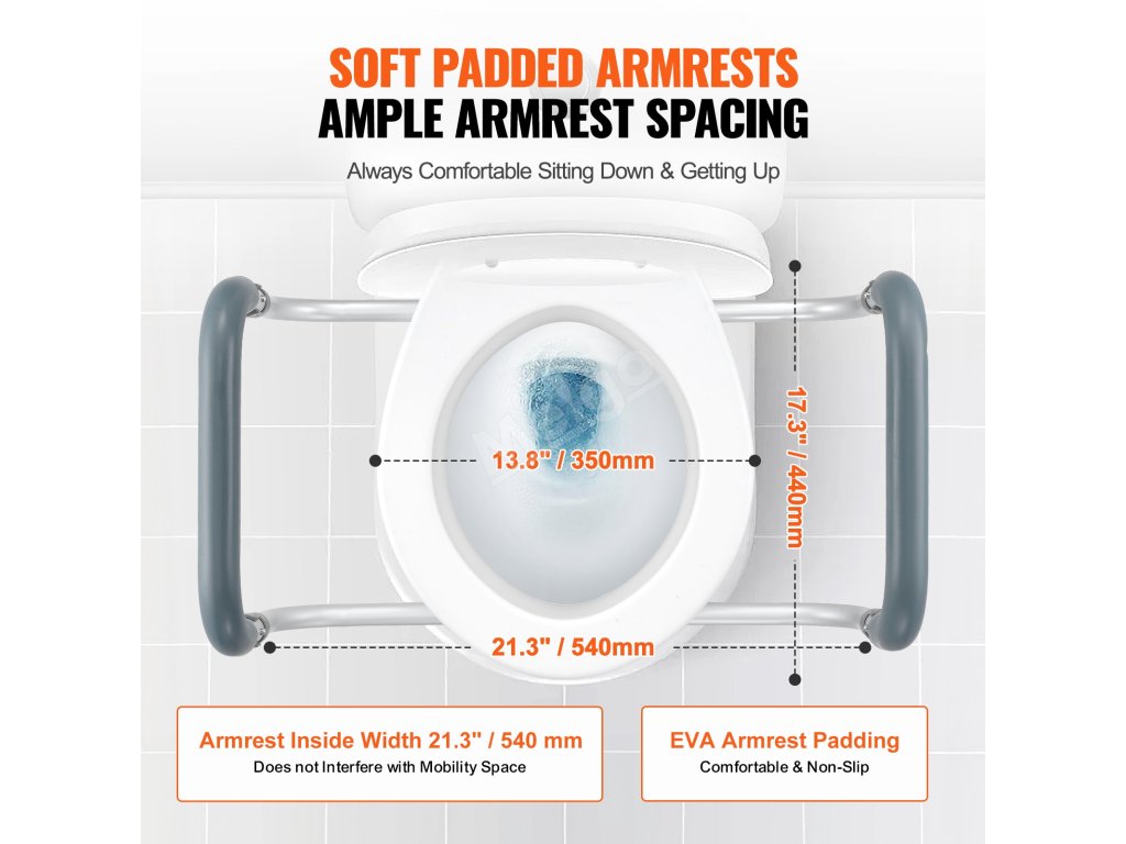 Nadvýšené sedátko na wc 3.5" výška, nosnost 300 lbs, hliníkové madlo