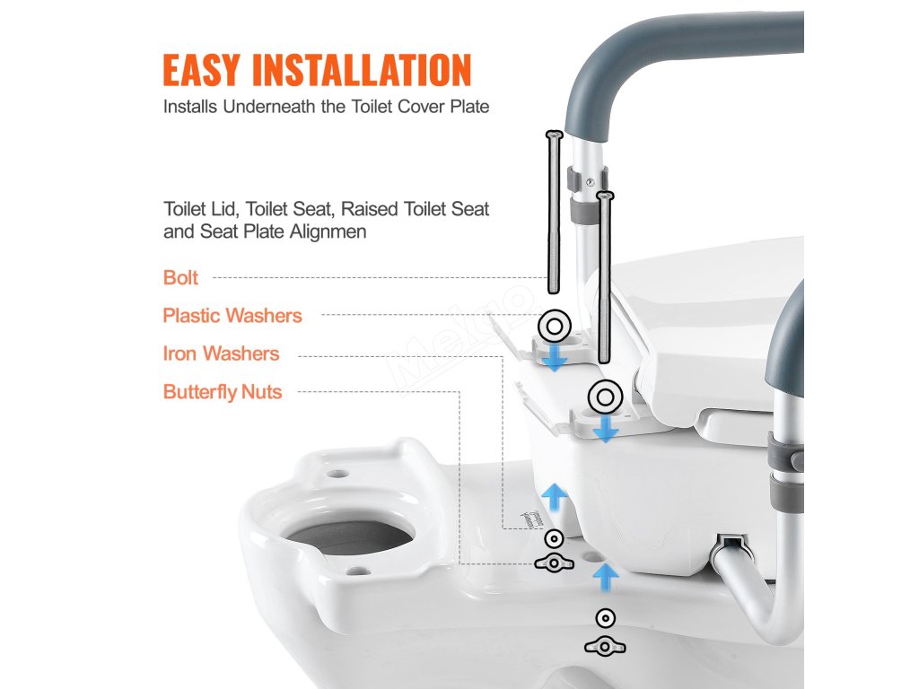 Zvýšené záchodové prkénko lze bezpečně upevnit pomocí přiložených šroubů a podložek bez použití nářadí a po instalaci nezabere v koupelně mnoho místa.