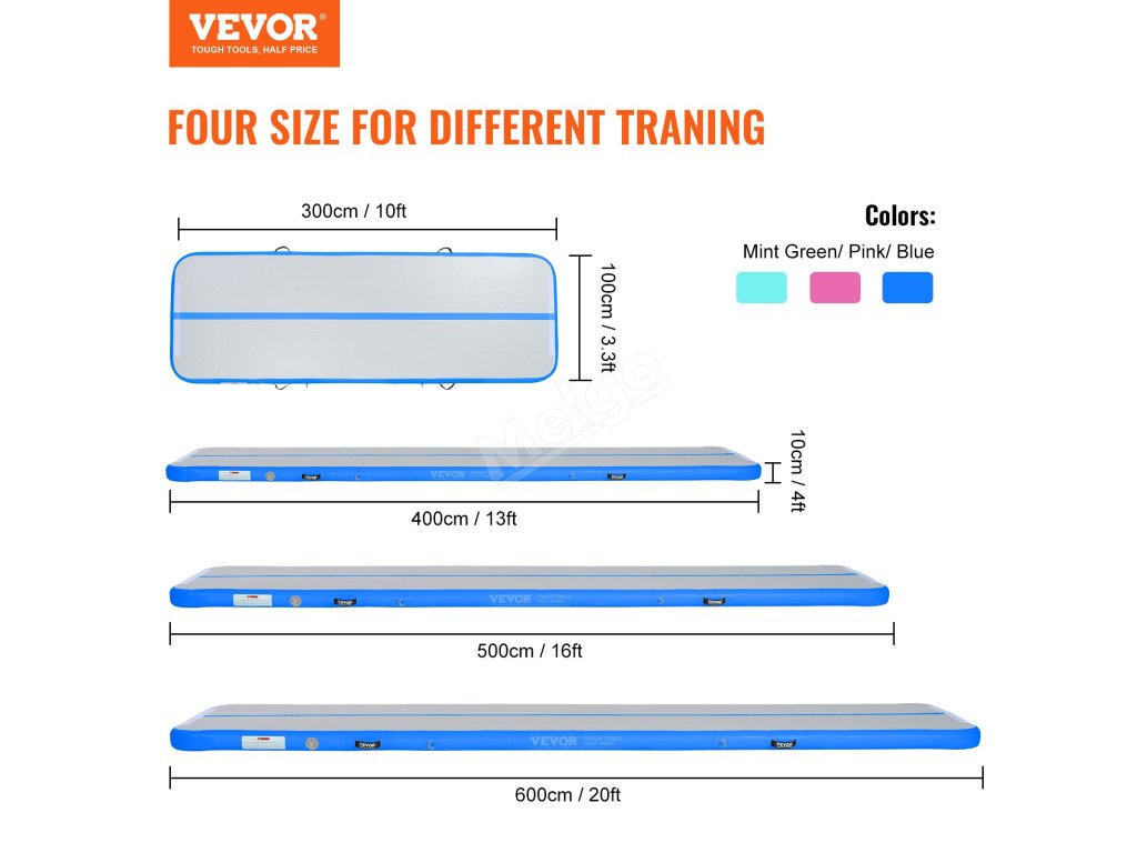 K dispozici je několik velikostí a barev a snadno se montuje. Tato gymnastická nafukovací žíněnka je vyrobena z vysoce kvalitní PVC fólie pro větší odolnost.