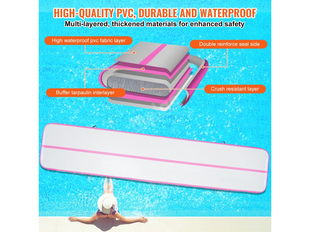 Nafukovací gymnastická matrace 4 inch tloušťka, 16 ft, s pumpou, růžová