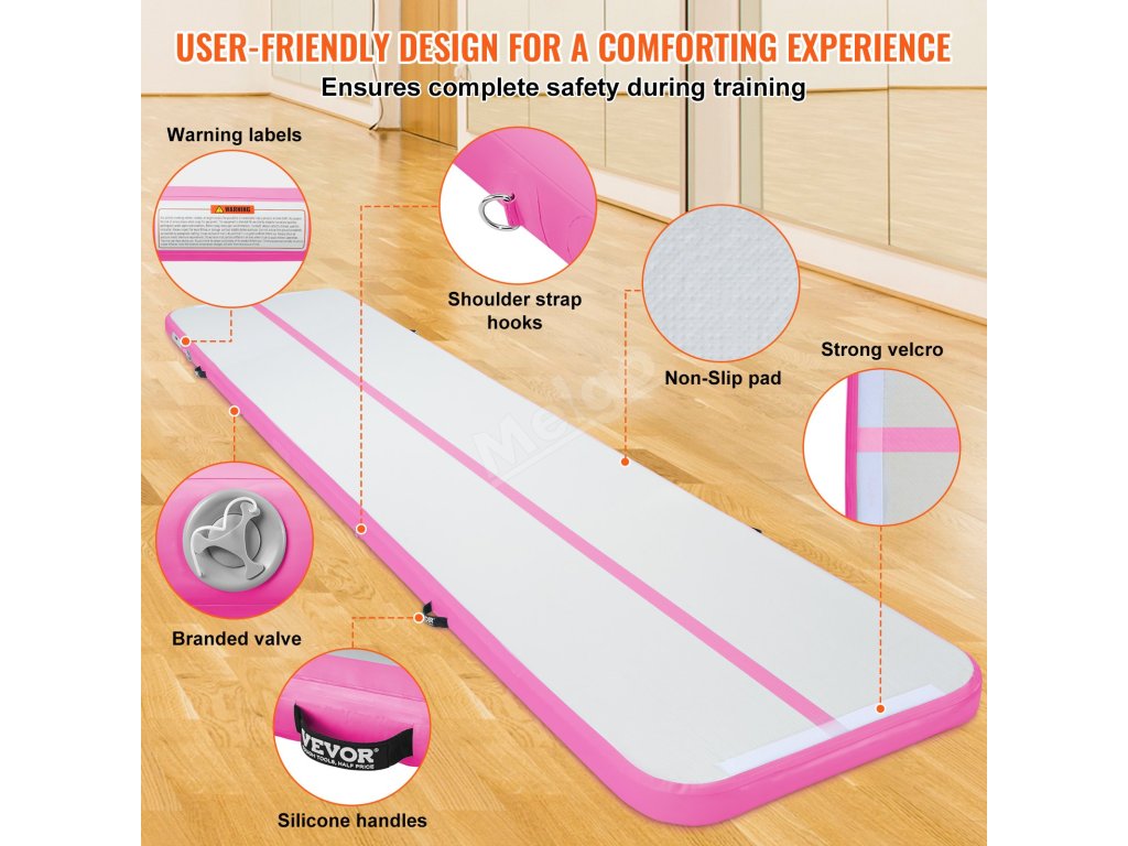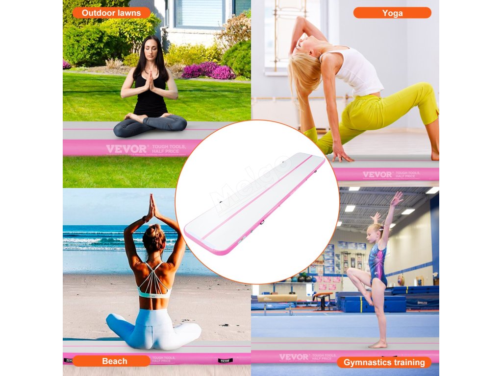 Tato nafukovací gymnastická podložka je měkká, vysoce elastická součást sportovního tréninkového vybavení vyrobená z PVC materiálu. Vyznačuje se voděodolnými, protiskluzovými a ekologickými vlastnostmi. Její vysoká elasticita zajišťuje ochranu před zraněním během cvičení.