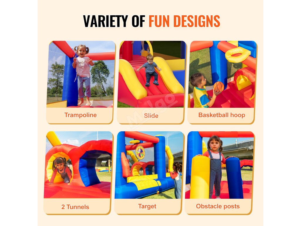 Tento rodinný skákací hrad na zahradě se skákacími plochami, skluzavkami, překážkovými sloupy, tunely a dalšími prvky nabízí vysokou hratelnost a poskytuje řadu možností pro zábavu a sbližování rodiny.