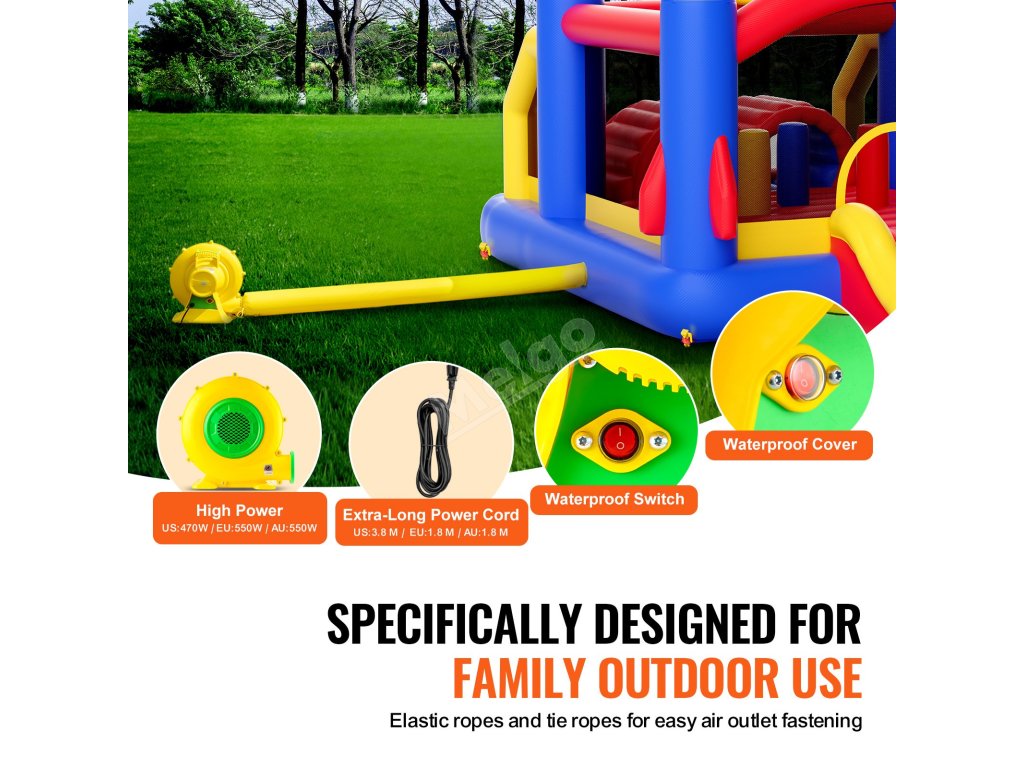 Nafukovací hrad s tobogánem a ventilátorem, 3–8 let, 160×94×96 inch