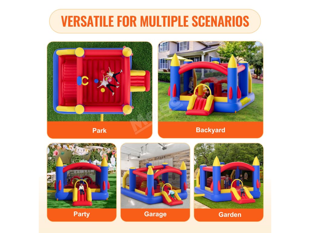 Skákací hrad je vybaven samolepicími opravnými záplatami pro snadné upevnění. Průhledná barva neovlivňuje jeho vzhled a zajišťuje jeho dlouhou životnost. Vhodné pro narozeninové oslavy, rodinné oslavy, festivalové oslavy a letní zahradní párty.