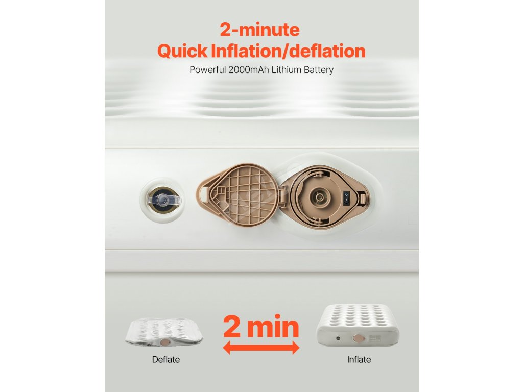 Naše nafukovací kempinkové lůžko se snadno sestavuje. Je vybavena vzduchovou pumpou s dlouhou životností a nafoukne se za 2 minuty. Matrace poskytuje pohodlné místo k odpočinku a polyesterová tkanina z PVC a pružiny jí dodávají odolnost. Po použití se kompaktně složí pro snadné skladování a přenášení.