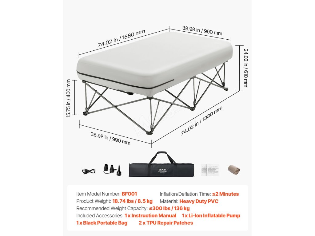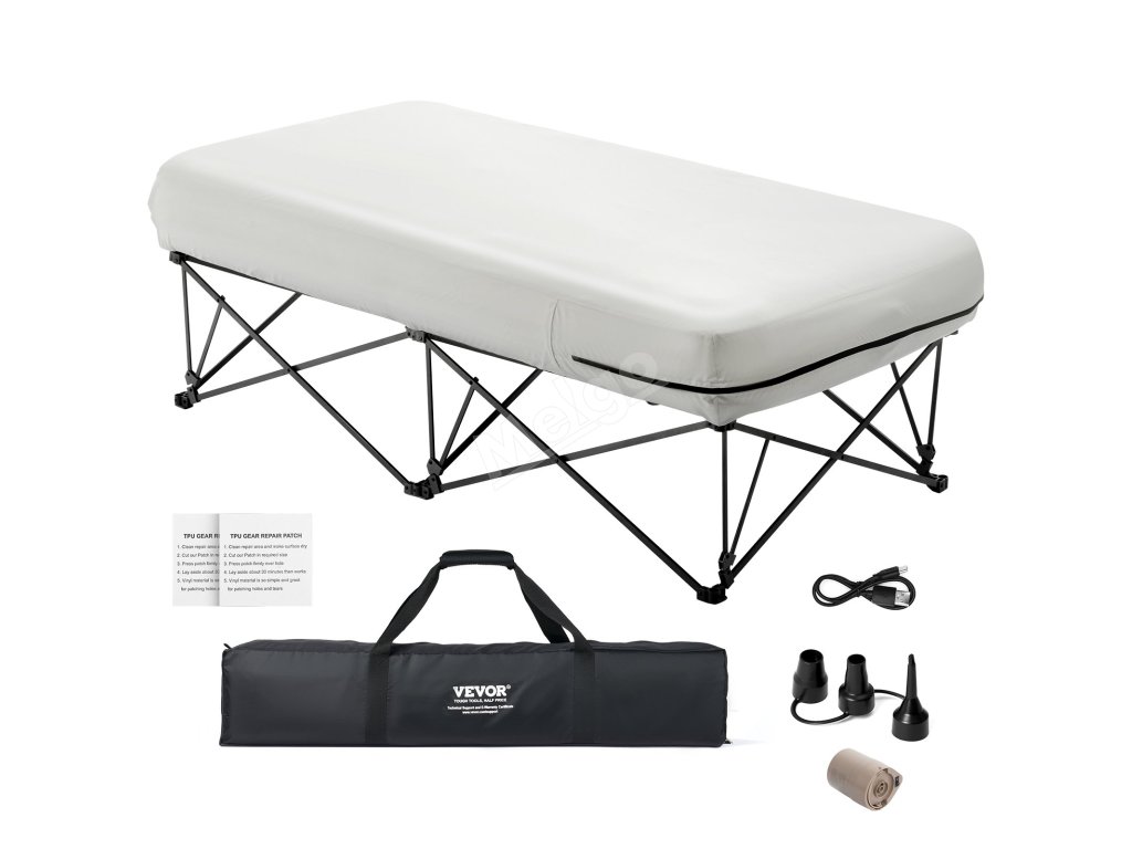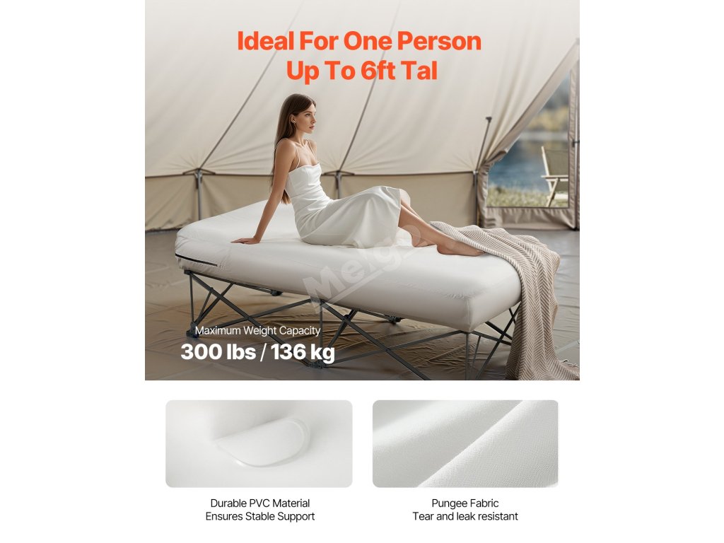 Tato nafukovací postel s rámem je vyrobena z PVC + pružinové polyesterové tkaniny, je odolná proti roztržení, nepropustná a má dlouhou životnost.