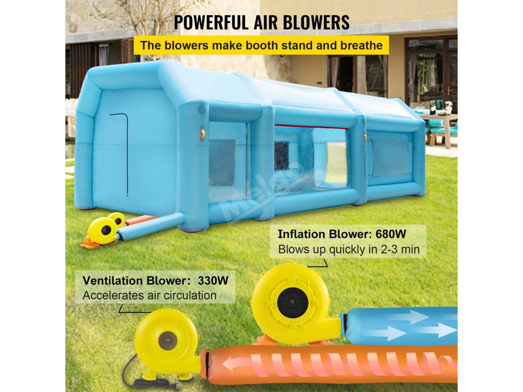 Nafukovací lakovací box 609.6×304.8×249.9 cm s filtrom a 2 ventilátory