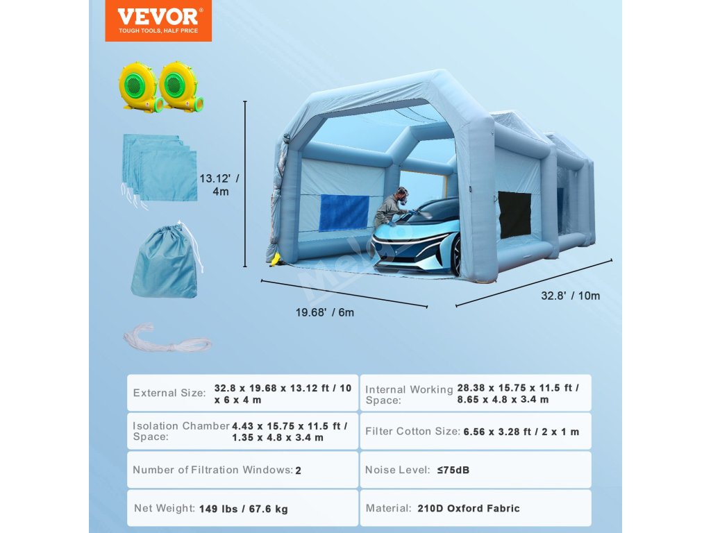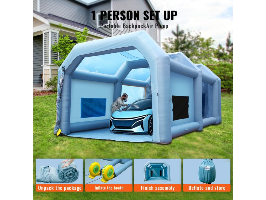 VEVOR, odborník na nářadí kolem vás. Nafukovací lakovací kabina je vyrobena z tkaniny 201D oxford a materiálu PVC, který je odolný a nešpiní se. Ideální volba pro natírání nábytku, venkovní kempování atd.