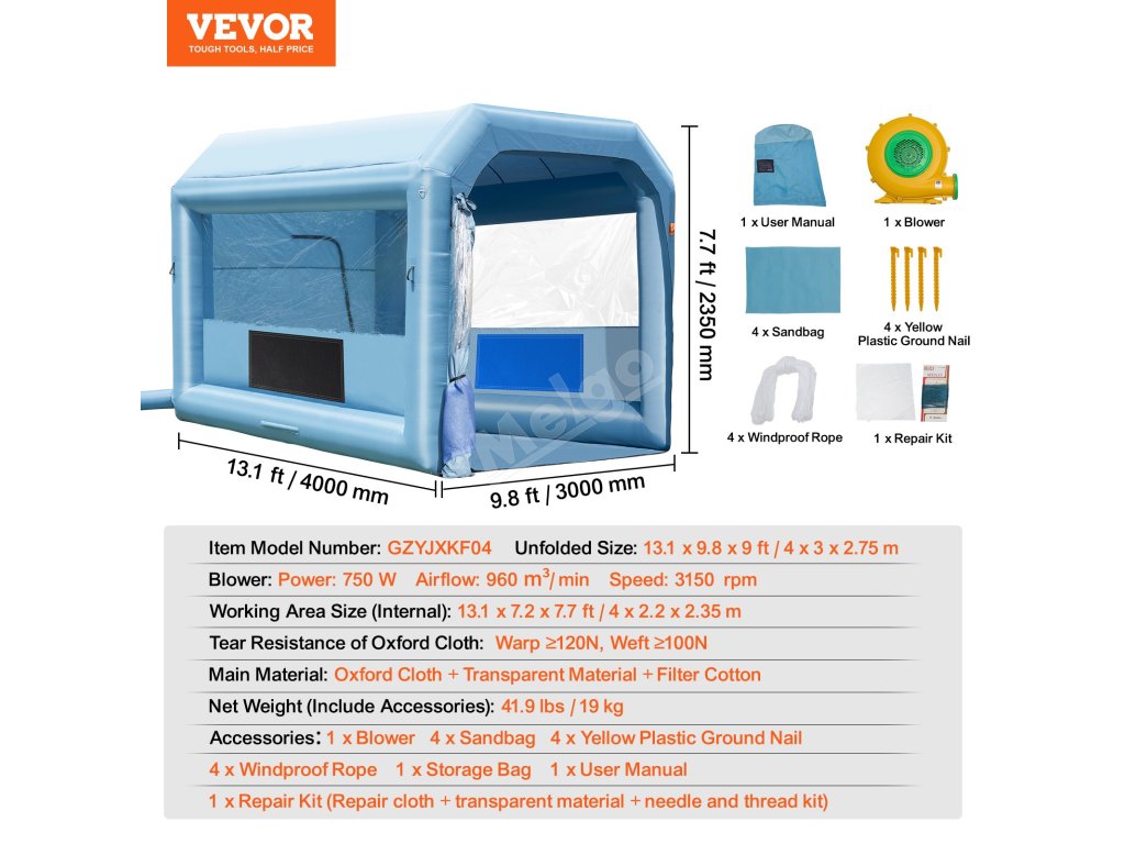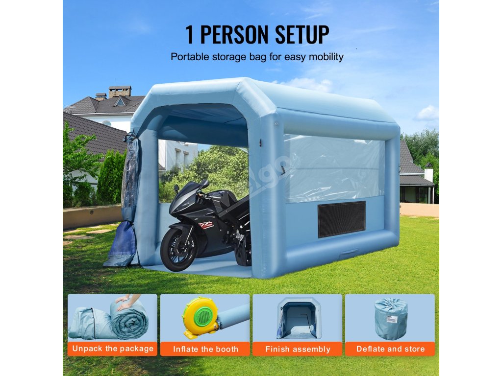 Nafukovací lakovací kabina 4×3×2.7 m, 750 W ventilátor, filtrace