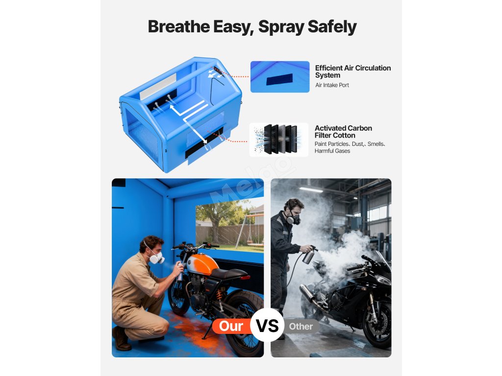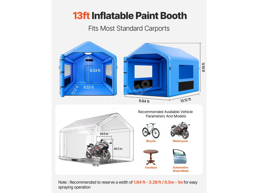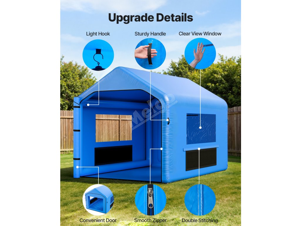Naše nafukovací stříkací kabina je vybavena vysoce výkonným filtračním systémem pro čistý pracovní prostor. Je vyrobena z prvotřídního materiálu s dvojitě prošitými švy pro dlouhou životnost. Snadno se sestavuje pro jednu osobu. Přenosná konstrukce funguje kdekoli. Nový vnější design zlepšuje vzhled a snižuje hromadění vody.