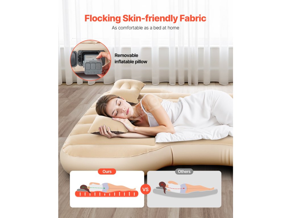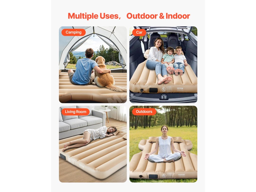 Nafukovací matrace do auta je vyrobena s měkkým a pohodlným flokovaným povrchem a vysoce kvalitním PVC, které kombinují odolnost proti vodě a estetický vzhled. Ergonomický design poskytuje odpružení a tlumení nárazů, zatímco vynikající vzduchotěsnost zajišťuje nerušený odpočinek.