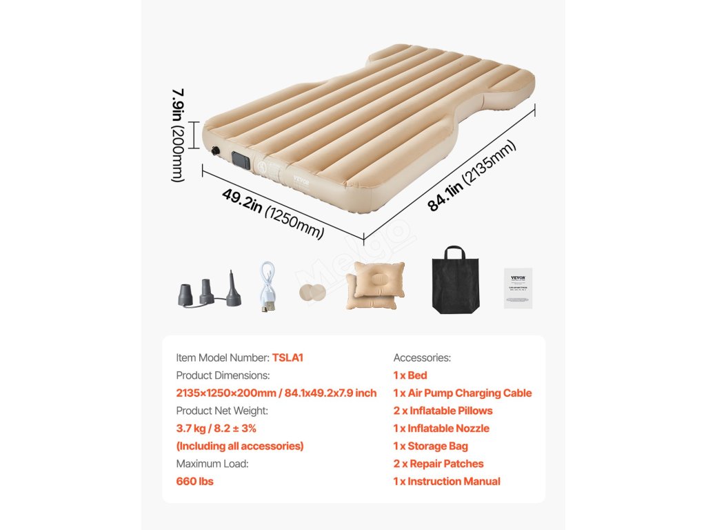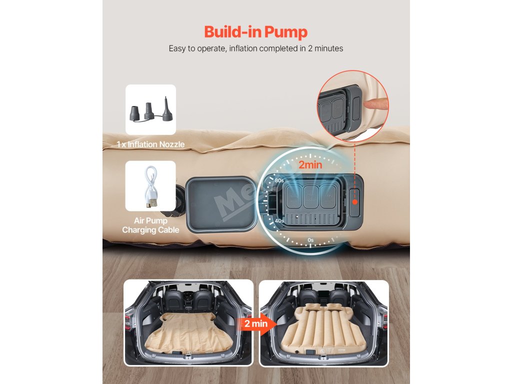 Nafukovací matrace do auta do modelu Y 2020–2024 s pumpou a 2 polštáři