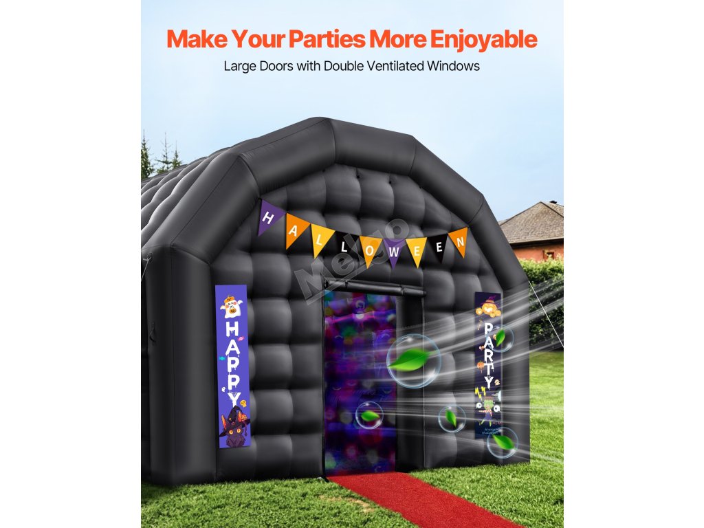Tento nafukovací stan o rozloze 323 m² nabízí velký prostor pro svatby, narozeniny, Halloween a epické večírky. Rychle se staví i balí, je kompatibilní s diskotékovým osvětlením, má odolnou tkaninu Oxford a zesílenou stabilitu, takže se stane vaším spolehlivým partnerem na každé party.