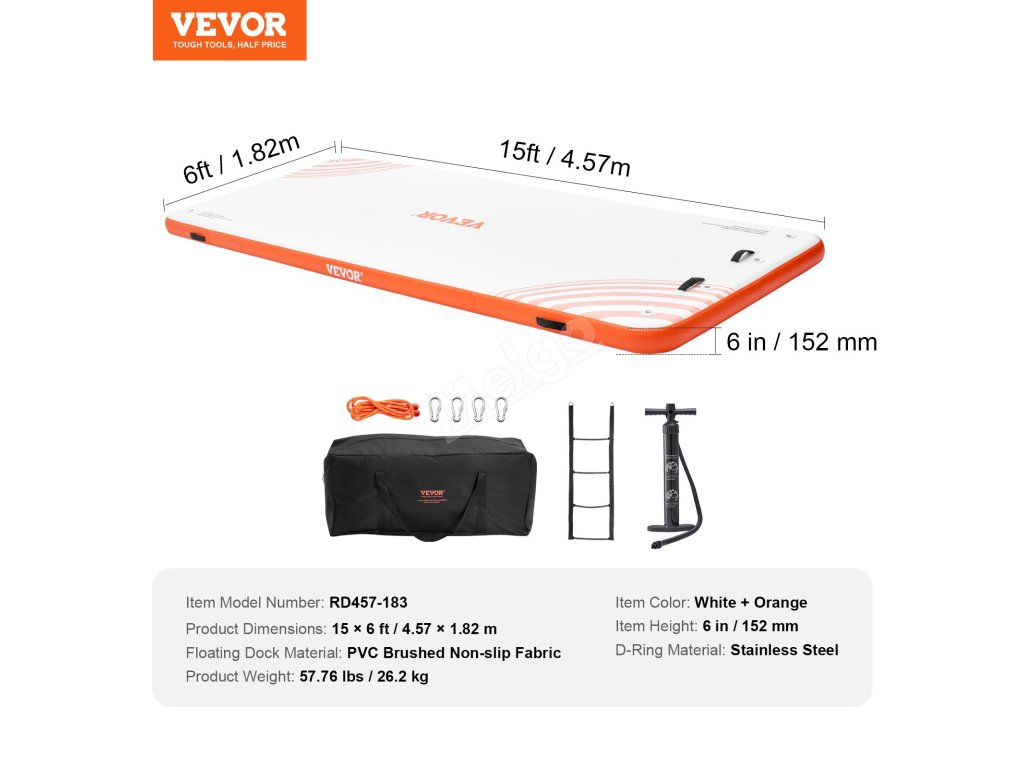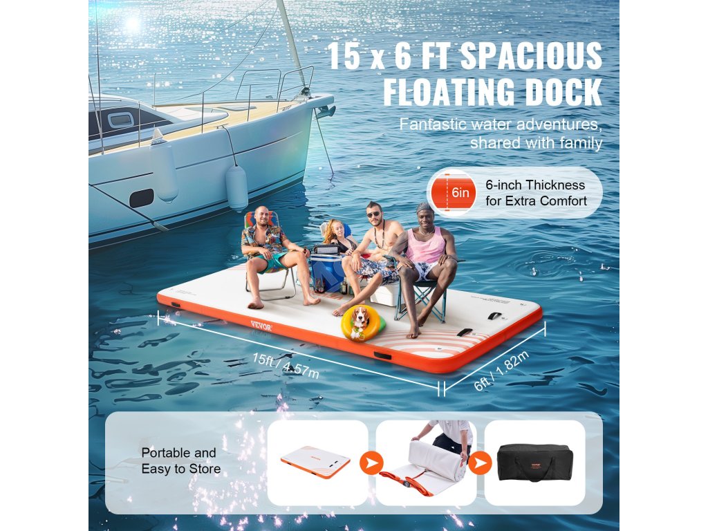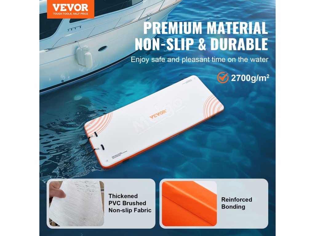 Zažijte fantastické letní dobrodružství s nafukovacím plovoucím dokem VEVOR 15 x 6FT! Naše plošina je navržena z PVC tkaniny s vysokou hustotou a zaručuje bezpečnou a nekonečnou zábavu na vodě. Snadno se nafukuje, skladuje a přepravuje a představuje dokonalé vodní hřiště pro nezapomenutelná letní dobrodružství.