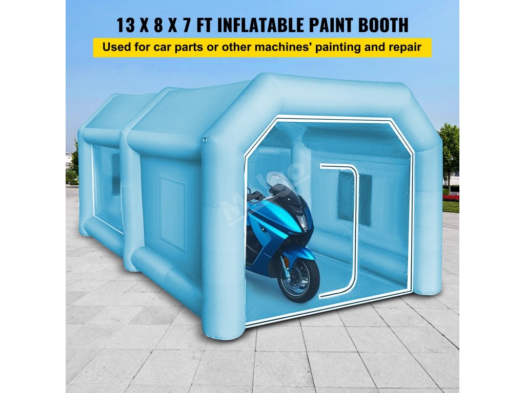 Tuto odolnou nafukovací mobilní lakovací kabinu lze široce využít k lakování a opravám dílů automobilů, motocyklů, nábytku, nářadí atd.