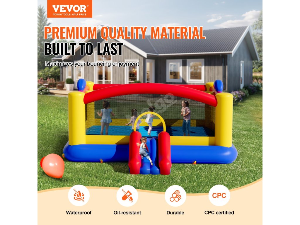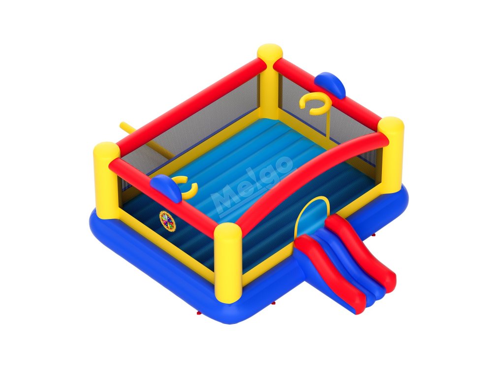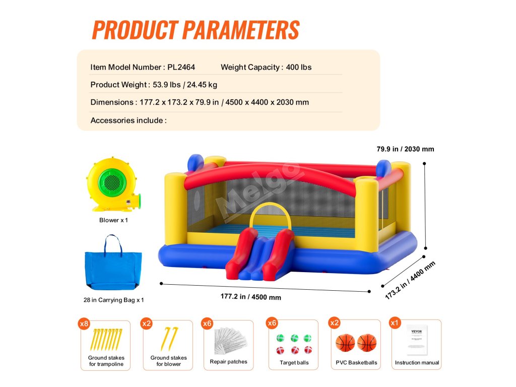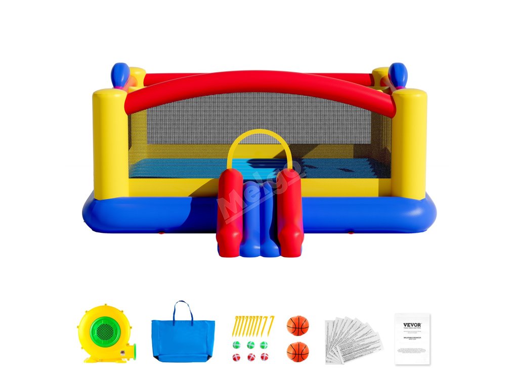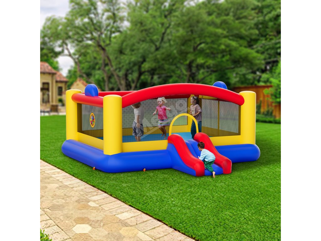 Rodinný zahradní skákací hrad má velkou skákací plochu a skluzavku a nabízí řadu možností pro rodinnou zábavu a sbližování. Inovativní design basketbalového koše a házecí hry umožňuje dětem užívat si soutěžní hry a zábavu při smečování s kamarády.