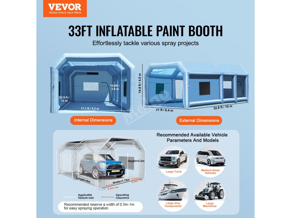 Nabízíme lakovací kabiny různých velikostí od 10FT do 33FT, takže si můžete vybrat ideální velikost pro své vozidlo a specifické potřeby.