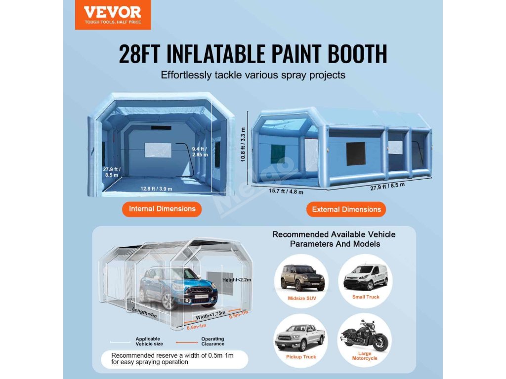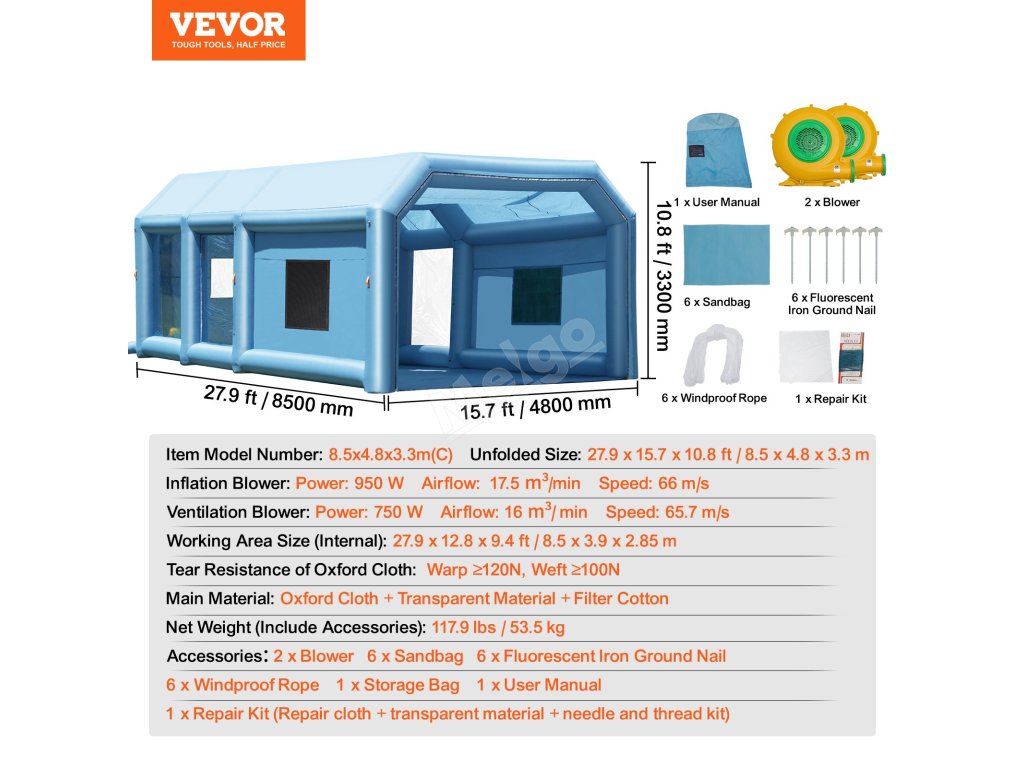 Nafukovací stříkací kabina 27.9×15.7×10.8 ft, 950W+750W, s filtrem
