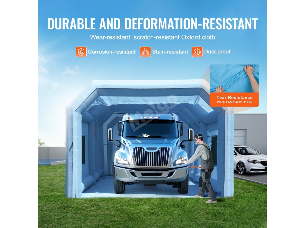 Naše nafukovací lakovací kabina využívá technologii primární filtrace a filtrace aktivním uhlím, která filtruje částice barvy a účinně odstraňuje škodlivé plyny, což vám zajistí větší pohodlí. Instalace je jednoduchá a umožňuje jedné osobě rychle vytvořit ideální pracovní prostor.