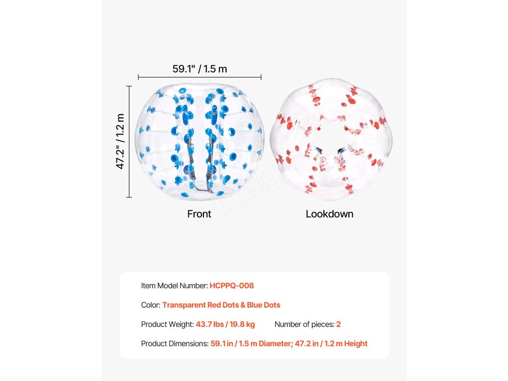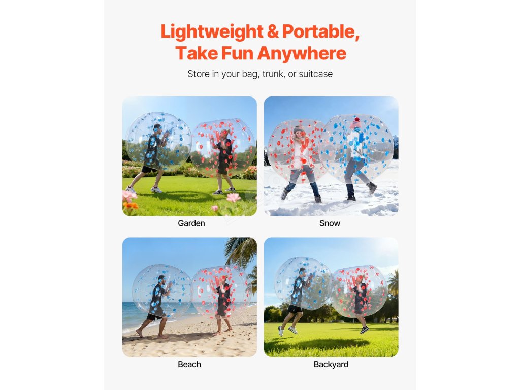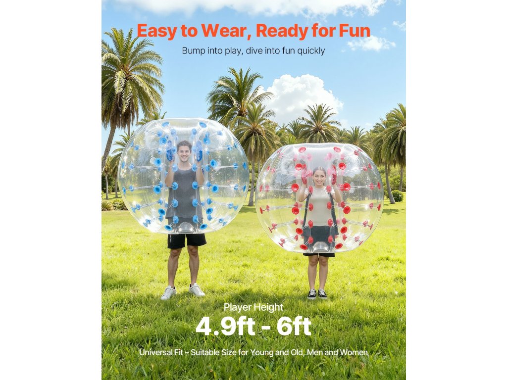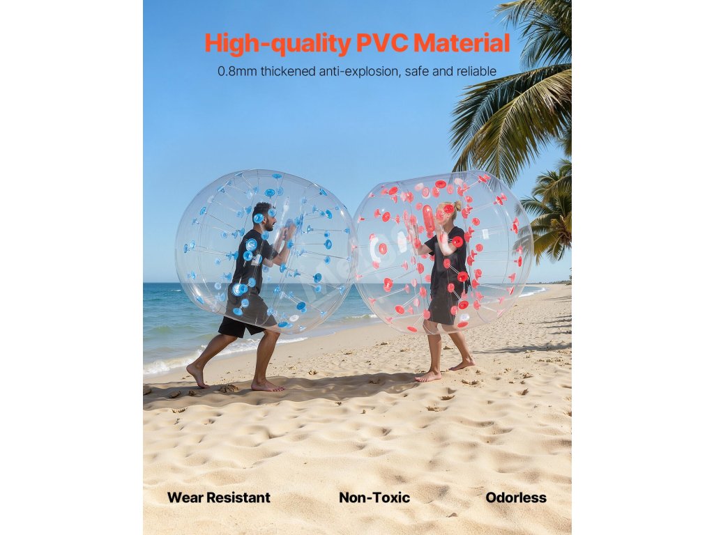 Rozpoutejte dokonalou zábavu s nafukovacími míči VEVOR 2PCS. Naše nárazníkové míče o vnějším průměru 5FT, vyrobené z 0,8 mm silného PVC odolného proti výbuchu, jsou navrženy pro maximální odolnost a bezpečnost. Připravte se na nárazové vzrušení a vytvořte nezapomenutelné okamžiky s bublinkovými míči VEVOR!