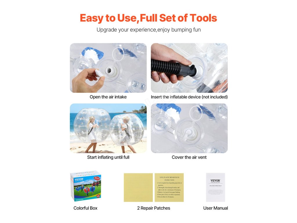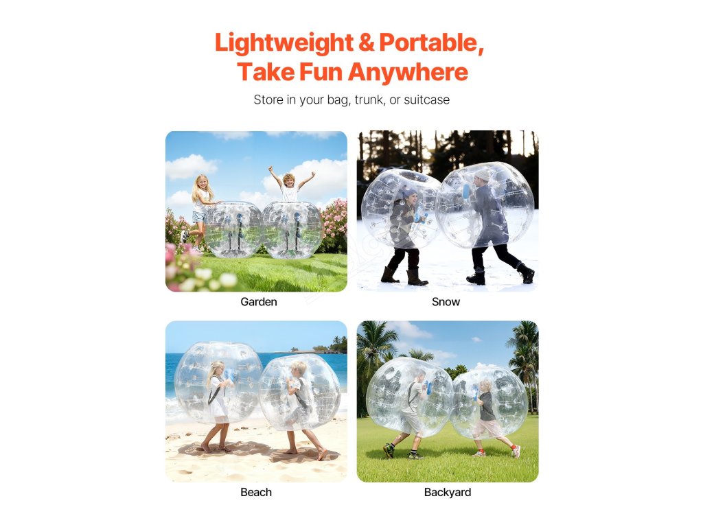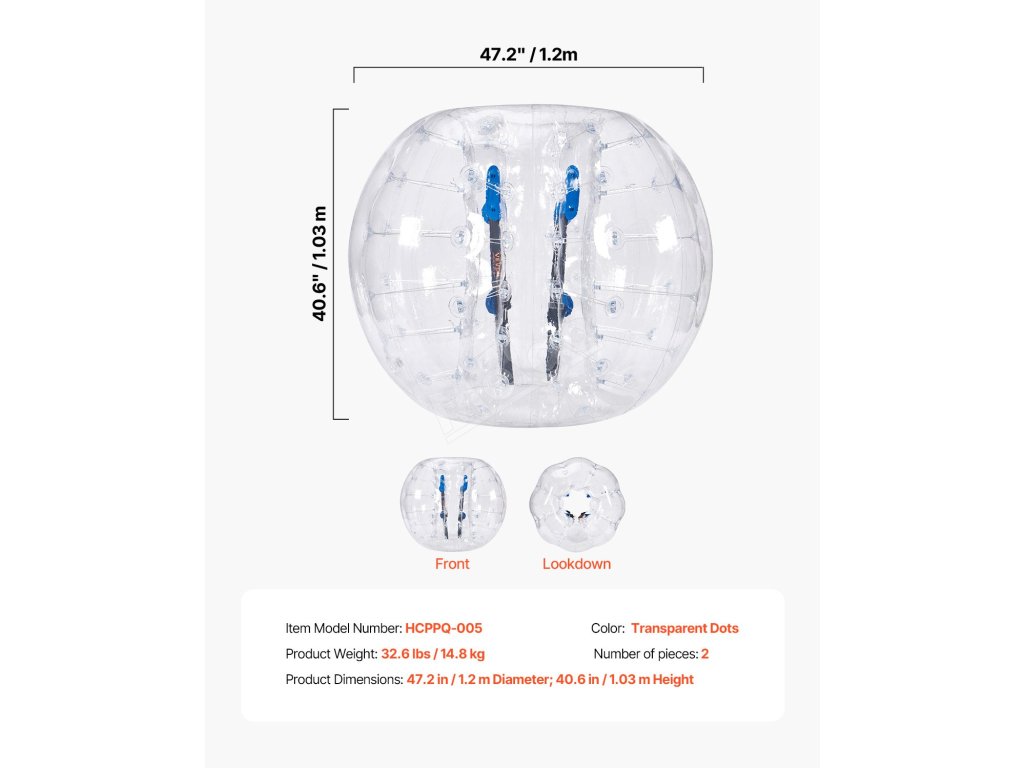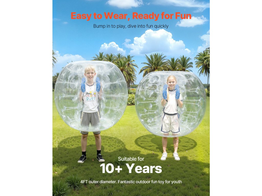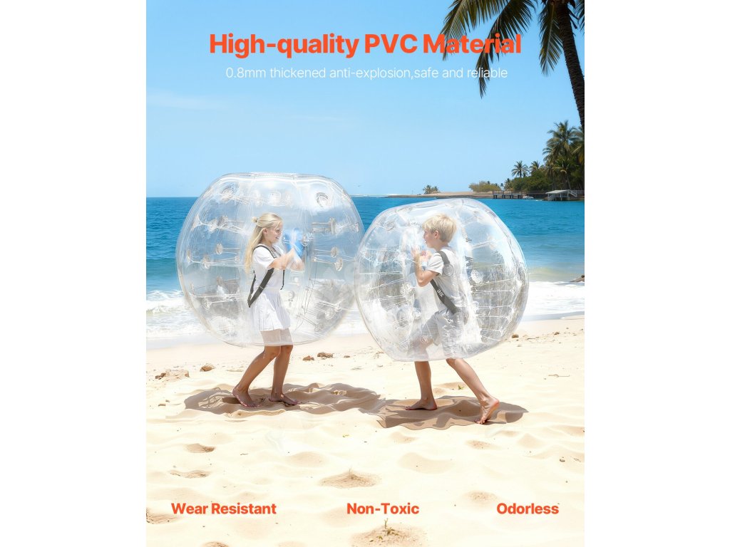 Rozpoutejte dokonalou zábavu s nafukovacími míči VEVOR 2PCS. Naše nárazníkové míče o vnějším průměru 4FT, vyrobené z 0,8 mm silného PVC odolného proti výbuchu, jsou navrženy pro maximální odolnost a bezpečnost. Připravte se na nárazové vzrušení a vytvořte nezapomenutelné okamžiky s bublinkovými míči VEVOR!