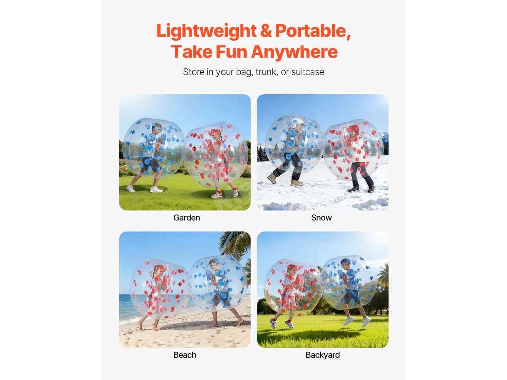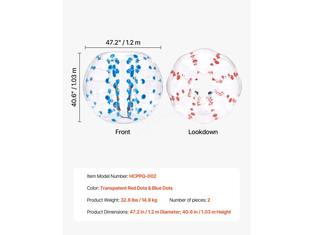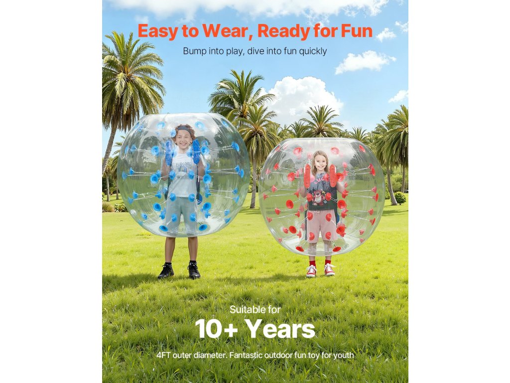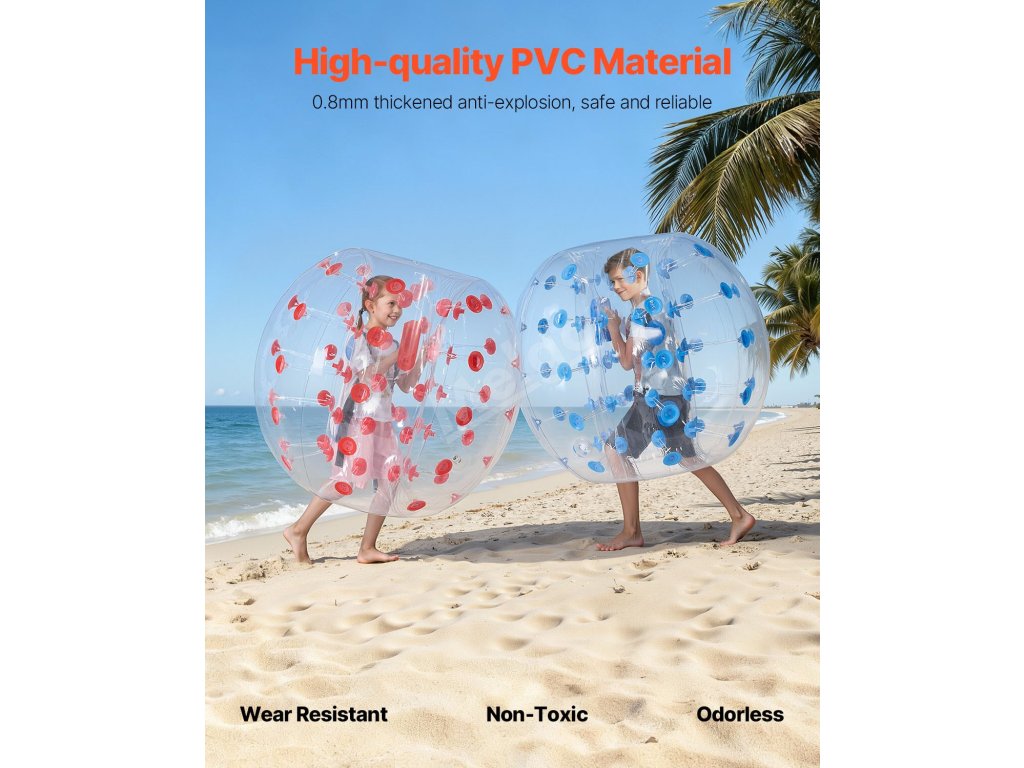 Rozpoutejte dokonalou zábavu s nafukovacími míči VEVOR 2PCS. Naše nárazníkové míče o vnějším průměru 4FT, vyrobené z 0,8 mm silného PVC odolného proti výbuchu, jsou navrženy pro maximální odolnost a bezpečnost. Připravte se na nárazové vzrušení a vytvořte nezapomenutelné okamžiky s bublinkovými míči VEVOR!