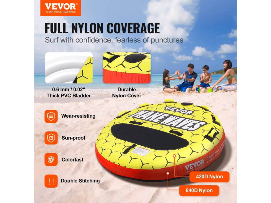 Vydejte se na vzrušující dobrodružství surfování na moři s nafukovacím vlečným člunem! Je potažen odolnou nylonovou tkaninou 840D a 420D a vnitřní trubky jsou vyrobeny z 0,03"/0,65 mm PVC. Naše člunové a tažné trubky jsou navrženy tak, aby odolávaly rozbouřeným vodám a poskytovaly dlouhotrvající potěšení.