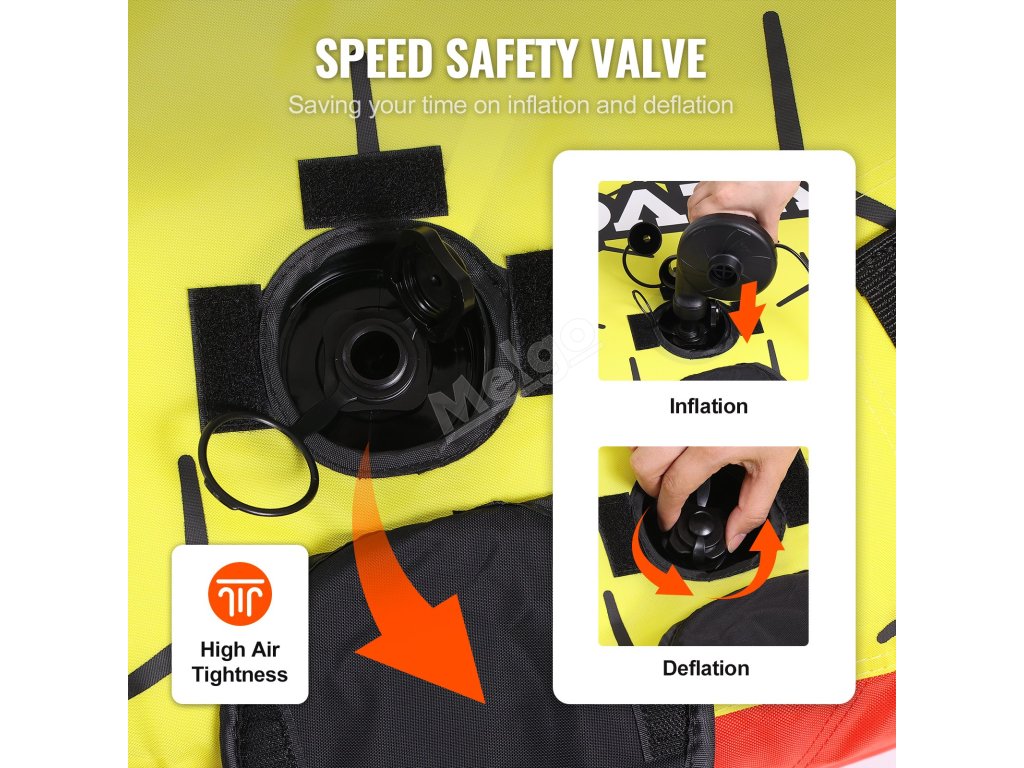 Náš nafukovací člun pro 3 osoby je vybaven rychlým a bezpečným vzduchovým ventilem. Nafouknete jej odšroubováním horního krytu proti směru hodinových ručiček a rychle jej vyfouknete otočením celého ventilu proti směru hodinových ručiček. Je to tak snadné jako 1-2-3-4!