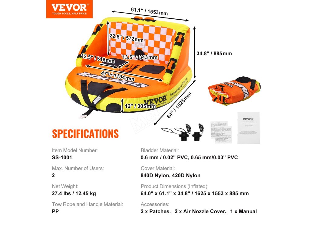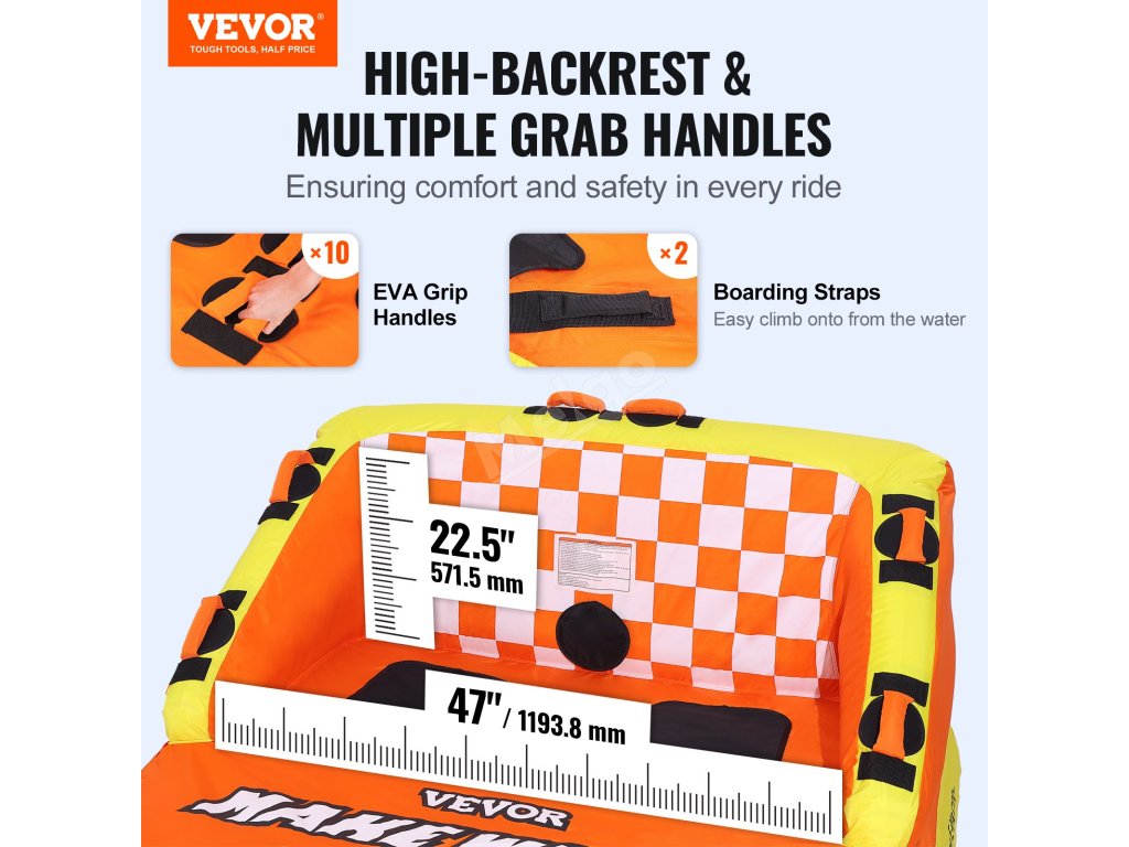 Bavte se vysokou rychlostí a plavba na tažné trubce vás ochrání. Opřete se o 22,5" vysoké opěradlo a držte se rukojeti, abyste si užili jízdu na vlnách beze strachu, že vás to odhodí.