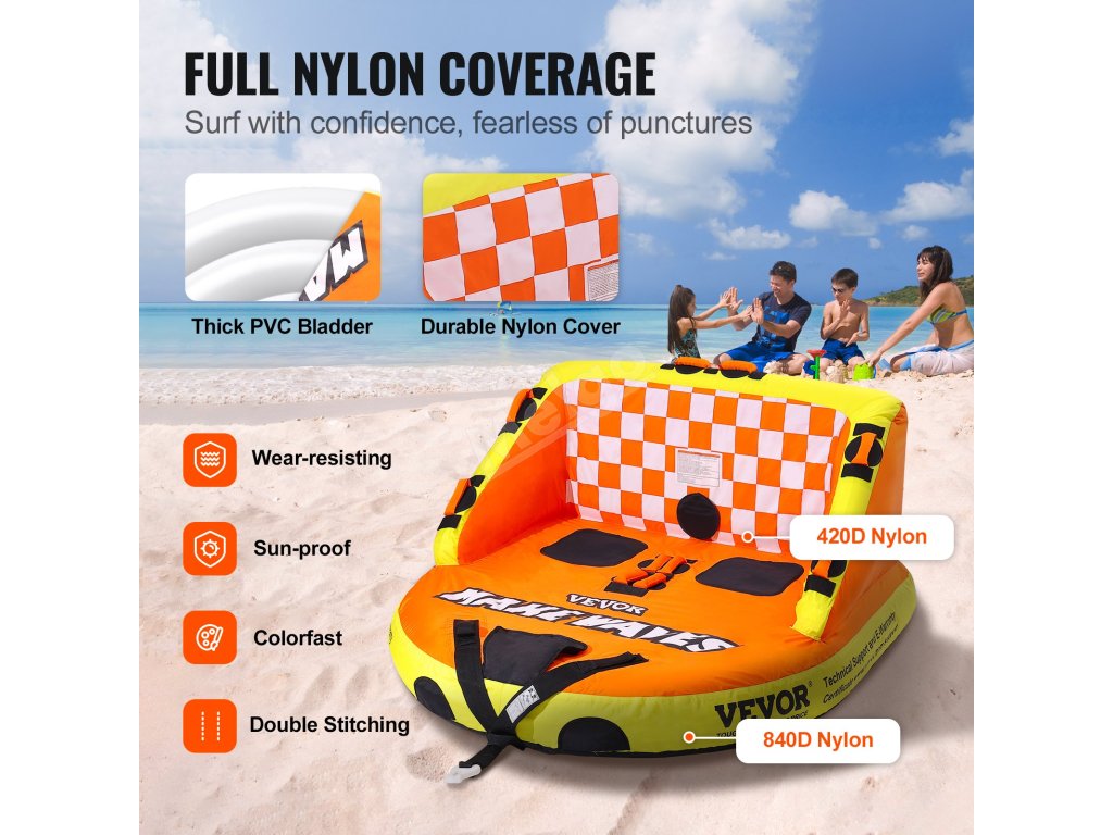 Nafukovací tažený tubus pro 1-2 osoby, nosnost 340 lbs, nylonový potah