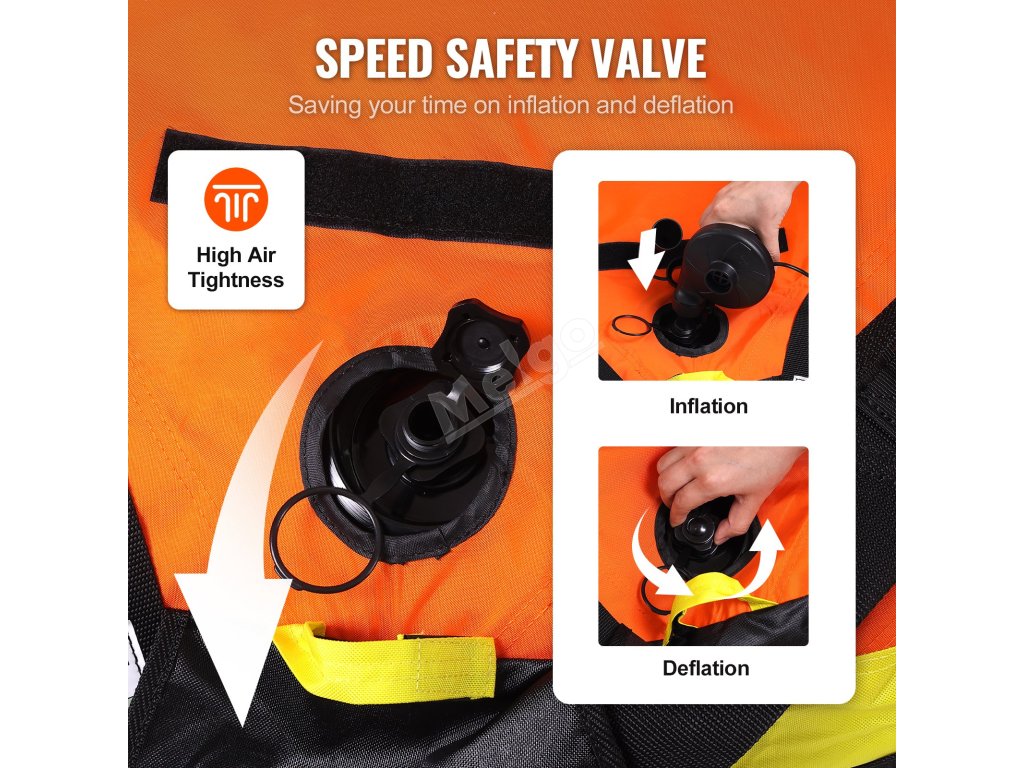 Náš nafukovací člun pro 2 osoby je vybaven rychlým a bezpečným vzduchovým ventilem. Nafouknete ji odšroubováním horního krytu proti směru hodinových ručiček a rychle ji vypustíte otočením celého ventilu proti směru hodinových ručiček. Je to tak snadné jako 1-2-3-4!