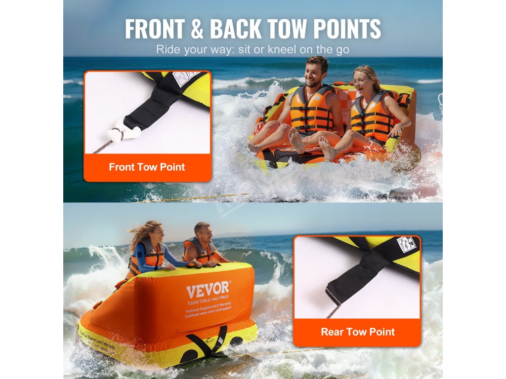 Objevte svět jízdních možností díky předním a zadním trakčním bodům na vodní trubce. Různé polohy a trakční body poskytují jedinečné zážitky z jízdy. Objevte nové vzrušení nastavením nylonového pásu pro dokonalé přizpůsobení.