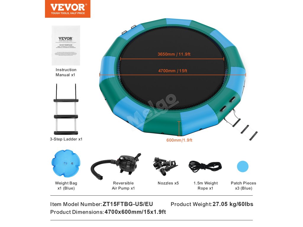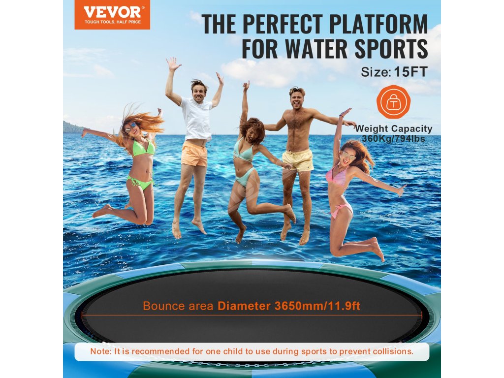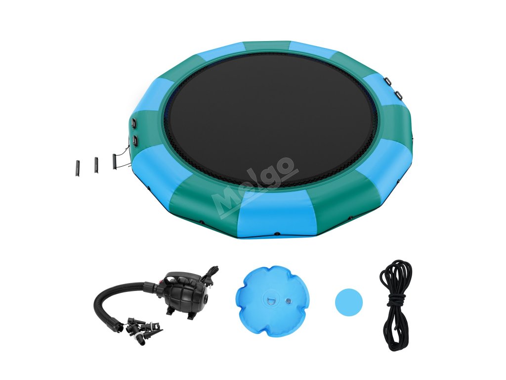 Je vybaven 600wattovou pumpou s čistě měděným motorem, která zajišťuje nepřetržitý proces nafukování. Montáž a demontáž této plovoucí trampolíny vyžaduje minimum času. Po vyfouknutí se stává kompaktní a lehkou, což usnadňuje její přepravu z jednoho místa na druhé.