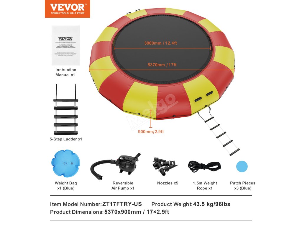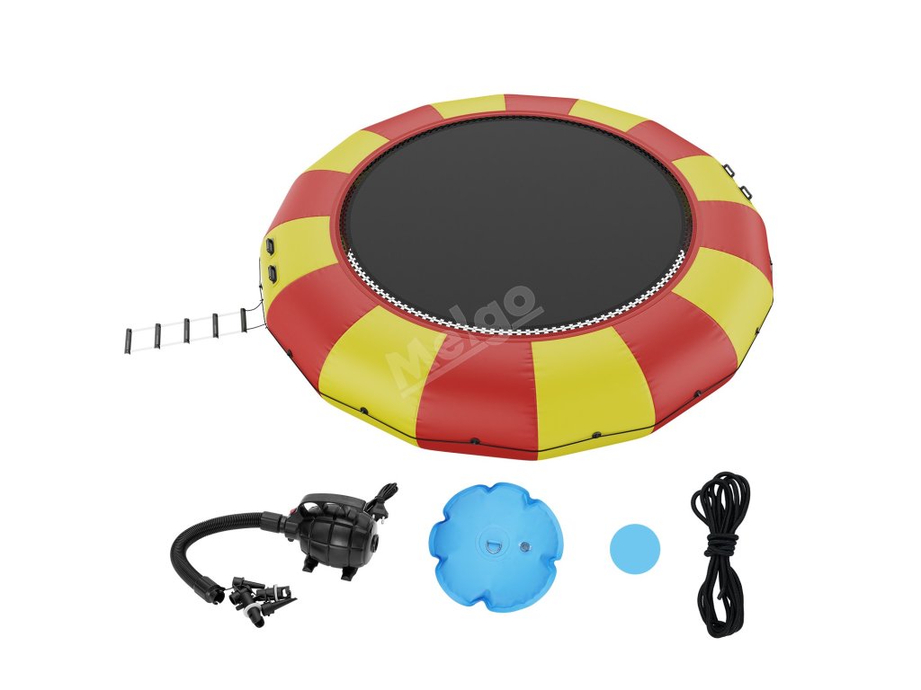 Je vybaven 600wattovou pumpou s čistě měděným motorem, která zajišťuje nepřetržitý proces nafukování. Montáž a demontáž této plovoucí trampolíny vyžaduje minimum času. Po vyfouknutí se stává kompaktní a lehkou, což usnadňuje její přepravu z jednoho místa na druhé.