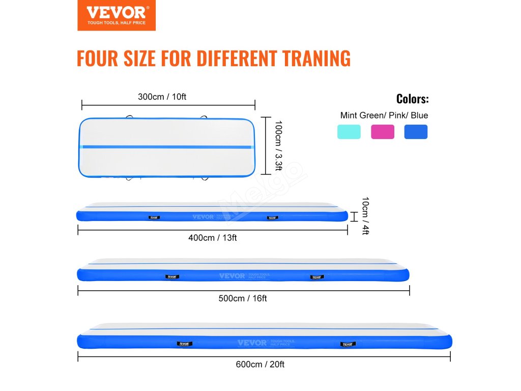 K dispozici je několik velikostí a barev a snadno se montuje. Tato gymnastická nafukovací žíněnka je vyrobena z vysoce kvalitní PVC fólie pro větší odolnost.