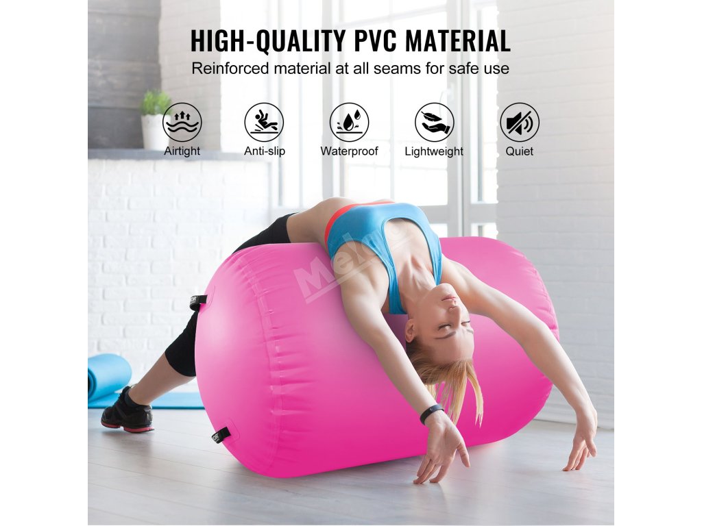 Nafukovací válec na cvičení, kulatý, s elektrickou pumpou, růžový
