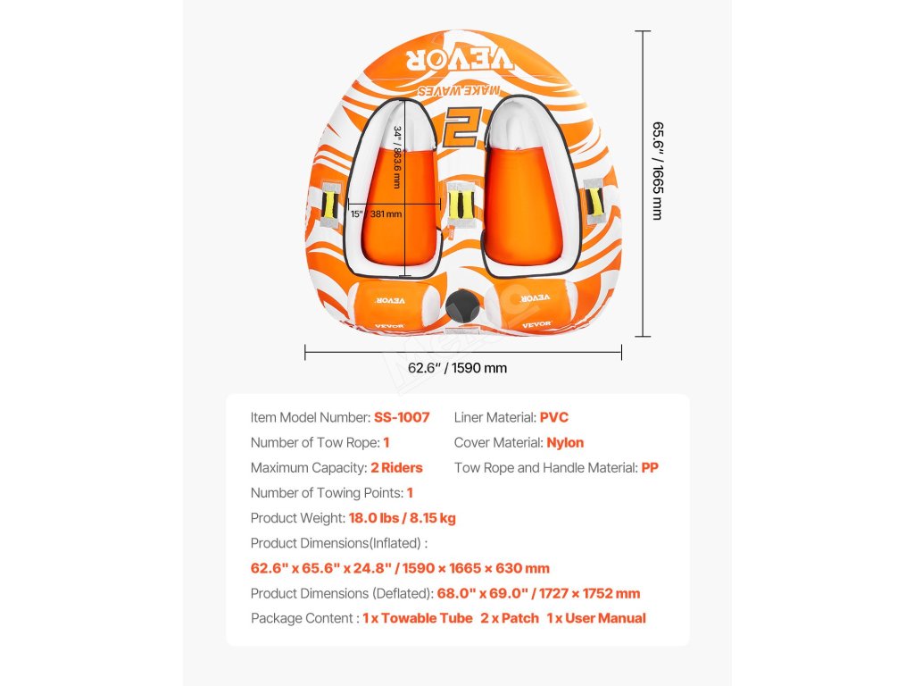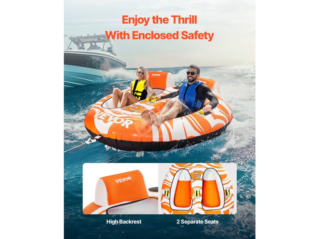 Zažijte dokonalé vodní dobrodružství s naším vlečným člunem pro 1-2 jezdce. Naše nafukovací tuby a vlečné čluny vyrobené z odolné nylonové tkaniny 840D a 420D, se silným vnitřním PVC měchýřem a polstrovanými rukojeťmi poskytují dlouhotrvající zábavu a vzrušující zážitky na vodě.